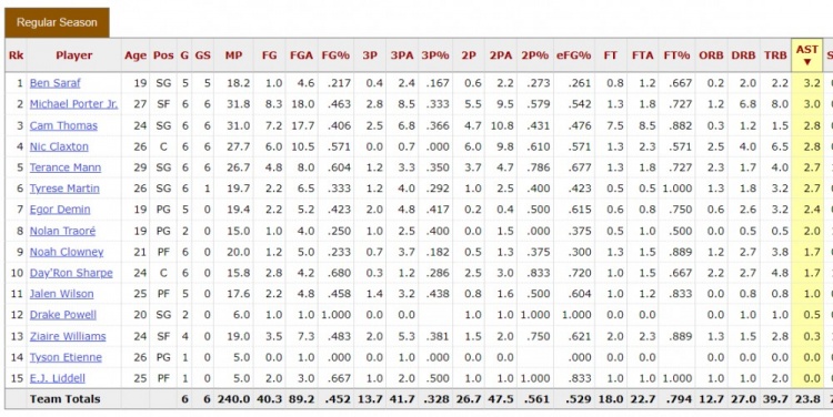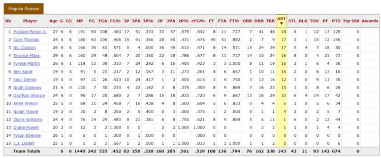 这……小迈克尔-波特6场18助 目前是篮网总助攻最多球员 场均第2